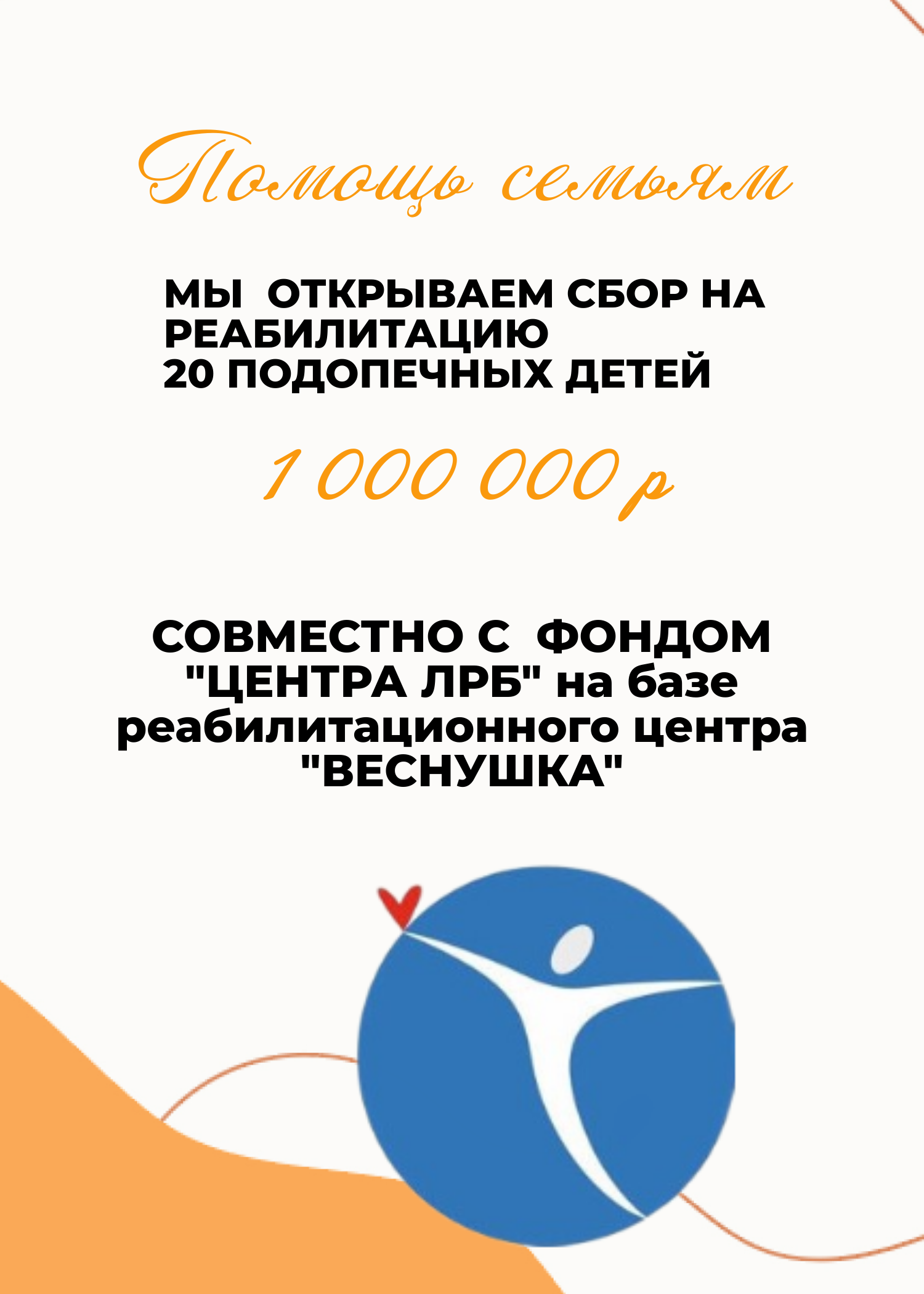 Но главное, что мы открываем СБОР на 1.000.000 рублей на реабилитацию 20 подопечных детей!